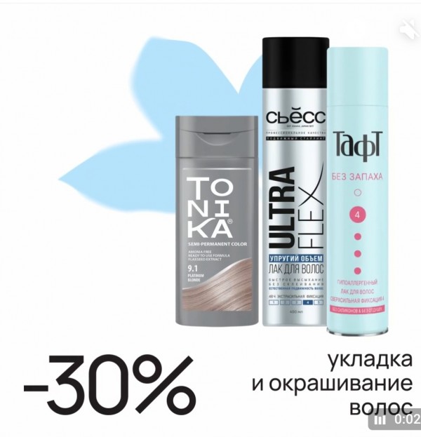 С 10 по 12 ноября скидка 30% на средства для укладки и окрашивания волос.